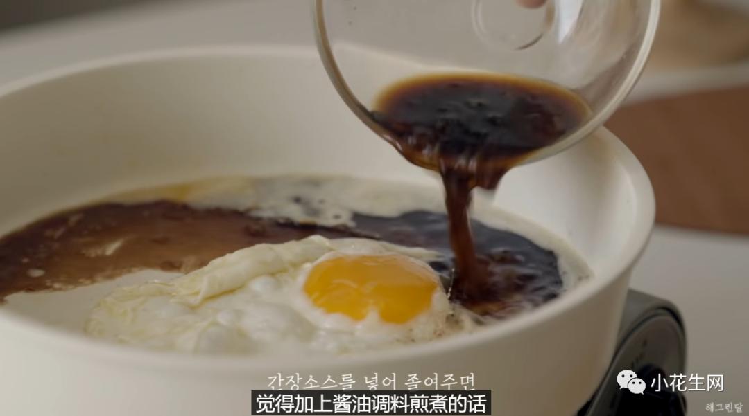 鸡蛋煎熟后,把调好的酱料倒进去撒上葱花,配饭吃