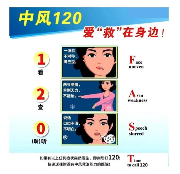 快速识别脑中风(脑卒中),中风“120”来帮您,如有上图中任何症状突然发生,即刻拨打120。山东大学齐鲁医院(青岛)脑科中心开启24小时脑卒中绿色通道,守护您的生命健康。 特别声明