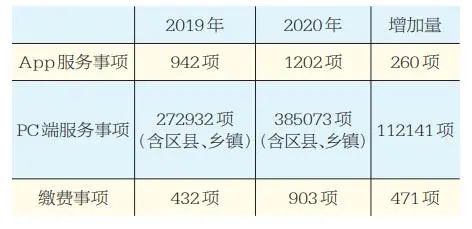 与2019年相比,2020年“渝快办”移动端在原有942项政务服务事项的基础上新增260项服务事项,目前服务事项总数达1202项。