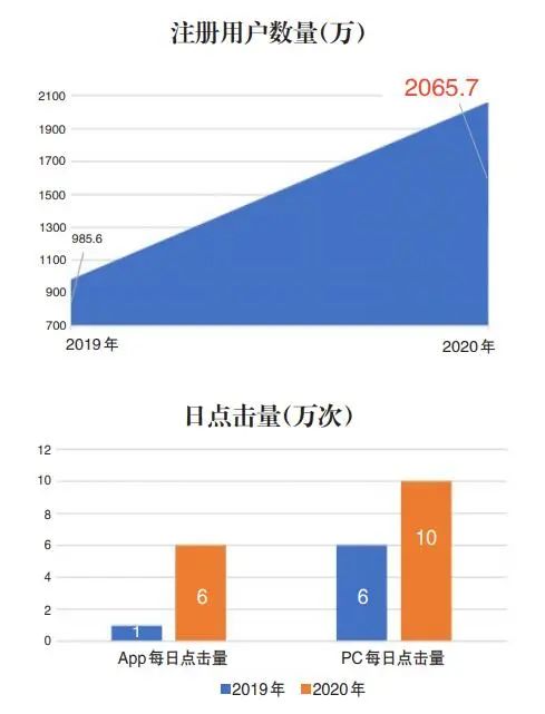 从注册用户来看,截至2020年12月31日,累计注册用户达到了2065.7万。其中2020年新增注册用户达1080.1万,个人用户注册增量979.1万,法人用户注册增量101万。