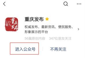 进入重庆发布微信公众号
