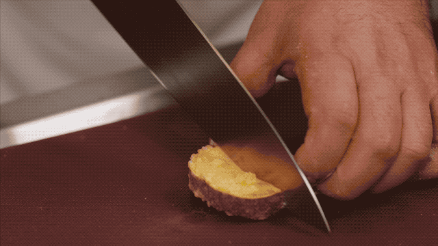 金时芋是甜味很浓的一种食材,想要甜味发挥极致的秘诀就是烹制时间稍微久一些,有一点点焦的感觉,像根菜,南瓜这种本身有甜味的食材,稍微炸焦一点,甜味会更上一层楼。