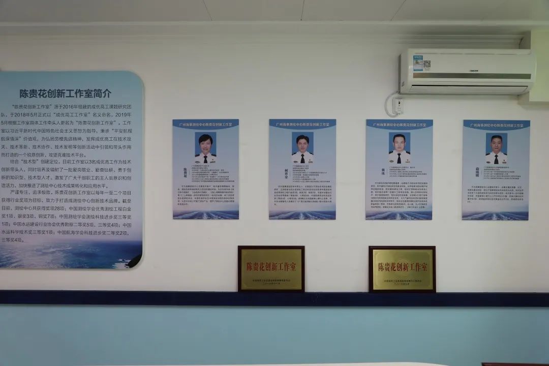 为着力推动工作室创建工作走深走实走远,广州海事测绘中心坚持“走出去”思路,与相关部门建立顺畅沟通机制。2019年,工作室主要成员先后前往惠州海事局“液货船安全和防污染工作室”和中国电信广州分公司“邓艳梅劳模创新工作室”调研学习,以他山之石为榜样,为工作室创建工作增添新思路、新动能。而后,广州海事测绘中心制定《陈贵花创新工作室创建方案》,并对照方案逐项完善、严格落实创建工作,实现调研学习、顶层设计、落地实施的“同频共振”。鉴于此,2019年12月,工作室以99分通过部海事局验收,成为直属海事系统中首个以测绘技术创新为引领的劳模先进创新工作室。2020年1月,工作室被广东省总工会命名为“广东省劳模和工匠人才创新工作室”。
