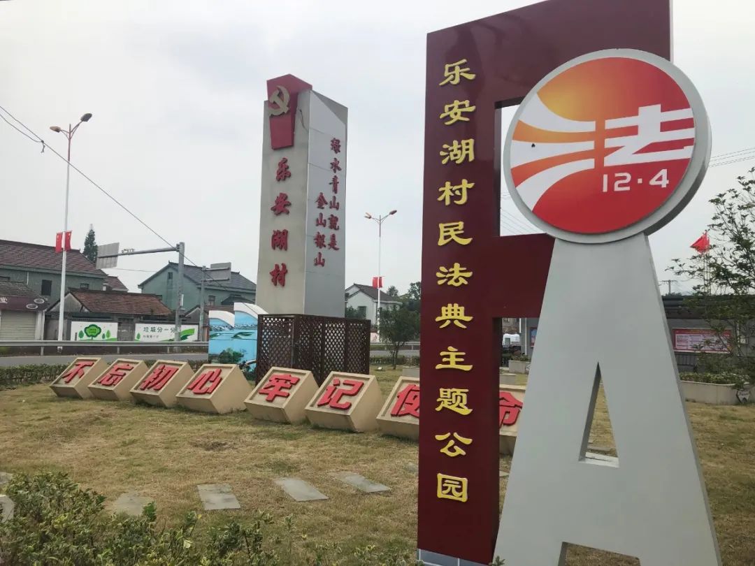 为让民法典真正走到群众身边、走进群众心里,余姚市司法局、余姚市住建局联合建成余姚首个市级层面“民法典”主题公园。余姚市民法典公园位于梨洲街道蛇山公园,在公园原有自然景观基础上,通过富有雕塑、造型、展示、解读等,承载了大量的民法典元素,多维度、立体化、全方位宣传民法典知识,将民法典知识融入到百姓的日常生活,集民法典宣传学习、休闲健身于一身。公园内“民法典与生活同行”系列宣传版面、“民法典解读”系列宣传版面从不同侧面全方位展现了民法典在人生各个阶段保护公民民事权利的新规亮点,突出了民法典“社会生活百科全书”的特色,内容丰富、适用性强。乐安湖村民法典主题公园