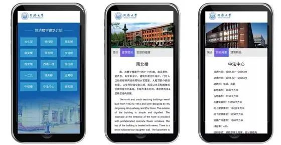 同济大学推出了建筑可阅读的交互装置,在四平路校区、嘉定校区随处可见。该装置综合“AR增强现实、3D打印、、智慧校园、移动端小程序”等智能、交互手段,进行了多样化的楼宇“建筑可阅读”系统的文化提升与呈现~