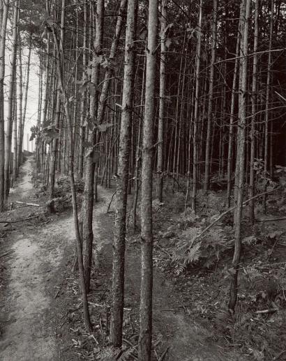 关于道路的作品是个人化的、直觉化的,因为它设置了一个包含观察者在内的潜在叙事场景。我们沿着作品中的道路走下去,或者我们想象摄影师沿着这条路走下去,也许还会在更远的地方再拍一张照片,而这正是阿杰所做的,也是罗伯特·亚当斯在他的三幅一组的作品中所做的事情。虽然他们把他们的世界精确而清晰地描绘了出来,但这些作品也有着真实的神秘性和诱惑性,因为在现实中,面对道路或小径,我们总是不得不看看转弯处会有什么,或者上坡的地方会有什么。
