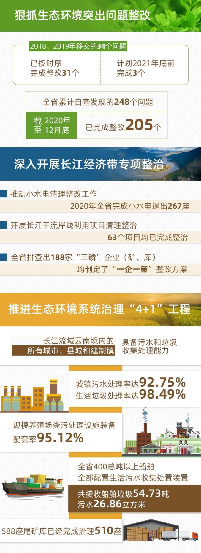 五年来,云南省坚持问题导向和目标导向,强化系统综合施策治理,以“钉钉子”精神扎实推进生态环境整治,推进全省经济社会发展全面绿色转型,全省生态环境保护发生新变化,经济社会发展取得新成效。