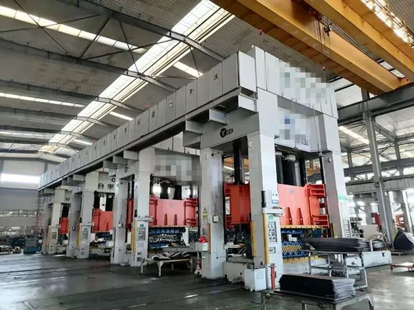 企业的冲压车间。人民网 金慧慧摄记者跟随销售经理一一参观了总装、涂装、焊装和冲压生产工艺车间。“核心的设计、模具都在这里。”走到冲压车间,他对记者说:“这里边(是)投资最大的,好几亿,一套模具大概几千万。”他表示,企业只生产汽车外壳,轮胎、电池等零部件是从其他厂家采购的。
