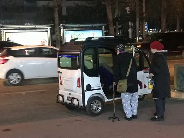 两位老年人准备乘坐“老年代步车”。人民网 杨乔摄相比城市,乡镇老年人对“老年代步车”的需求更大。采访中,相关生产及经销商均表示,车辆主要销往城乡接合部。在山东省德州市武城县鲁权屯镇宏海路边,记者统计发现,10分钟内至少有20辆三轮、四轮电动车驶过。