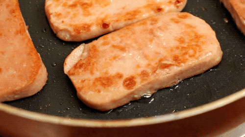 相较于国产午餐肉们的轻甜味与沙软口感,有人更偏爱SPAM的咸香弹嫩和紧实。它带着一种老美食品特有的粗犷大条style,很有几分江湖儿女不拘小节的意思。