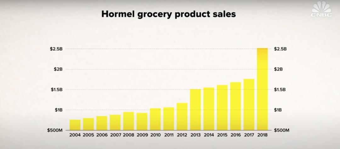 至2018年,SPAM销量超过80亿,销售额超过20亿美元,在老美一家独大,占据了90%的国内罐头肉类市场份额。