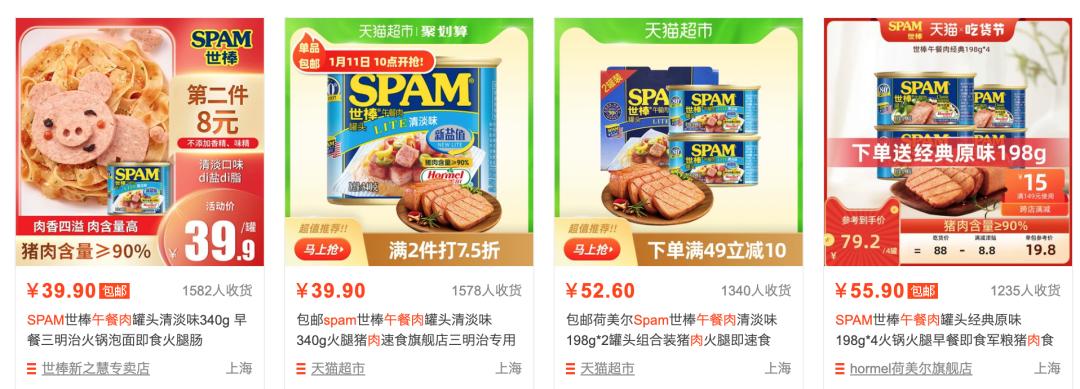 国内情况我们更熟悉。虽然不乏一些名气极大的本土竞争对手,但SPAM在各大电商的销量榜上,常年都能刷出存在感。