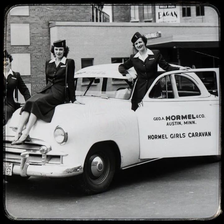 SPAM在战后物资紧缺的时代,仍然是十分抢手的香饽饽。荷美尔公司看准商机,打造了代表公司的爱豆“荷美尔女孩(Hormal Girls)”。