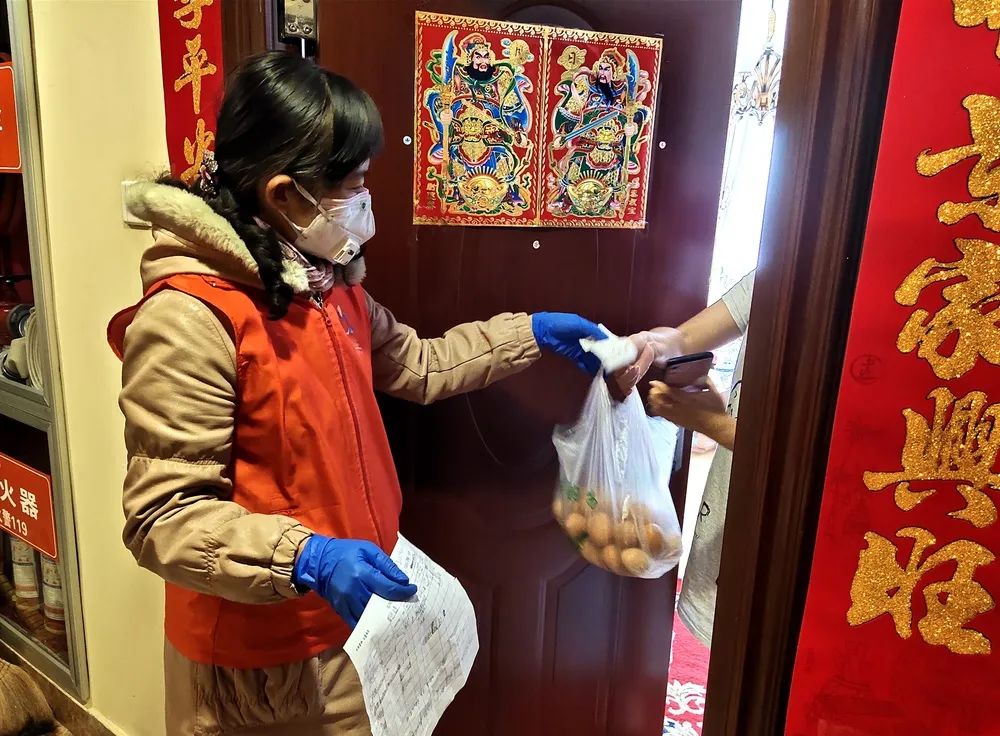 跑腿志愿者穿梭于商超、菜市场等公共场所之间