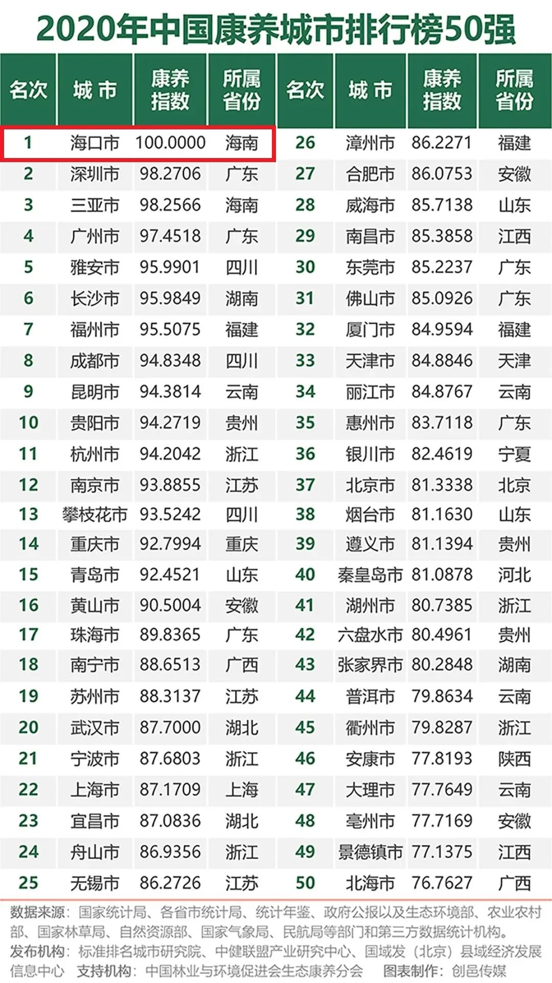 原标题:《2020年中国康养城市排行榜发布,海口首夺第一!》