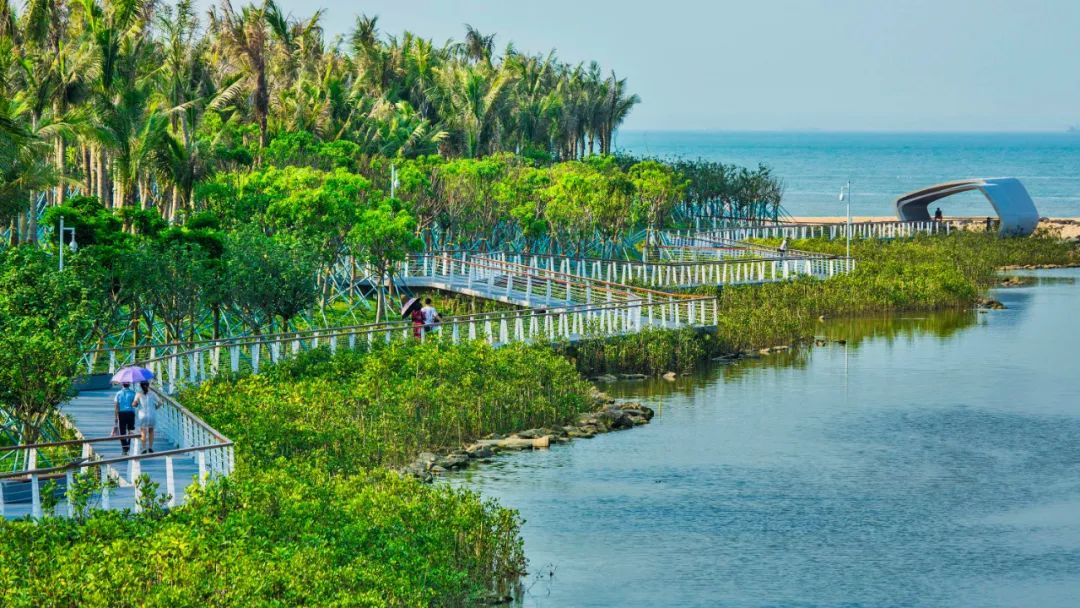 生机勃勃的三角池公园已经成为海口生态名片。葱茏翠绿