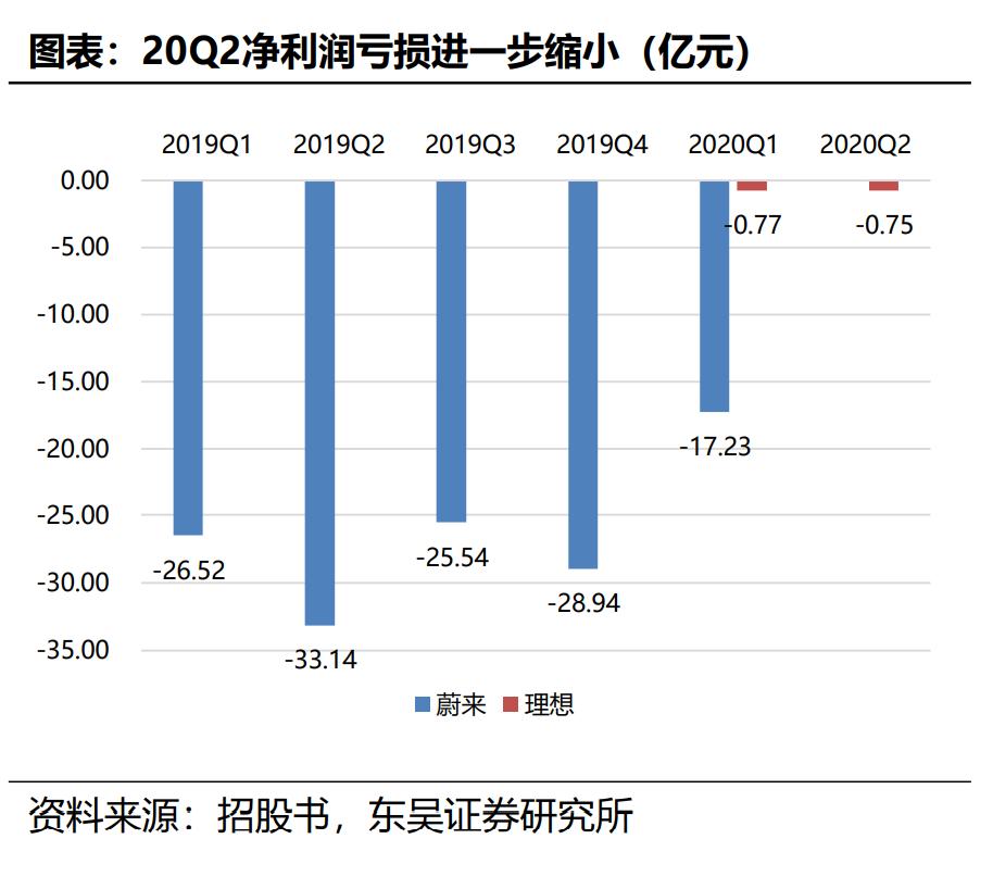 2020年以来,理想的亏损持续缩窄,在20Q1毛利率就变为正的8.45%,净利润-0.77亿元。同期蔚来的净利润为-17.23亿元,毛利率为-12.2%,理想具有更好的营收状况。