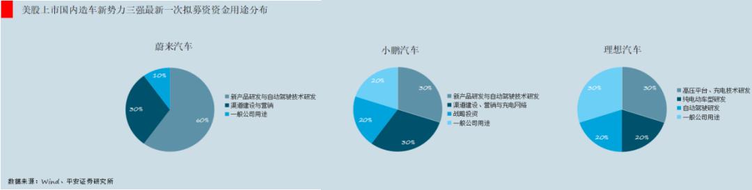 这个也能从最近的资金安排上看出来。以2020年12月蔚来、小鹏和理想三家的最新一次拟募资资金用途分布来看,蔚来汽车在新产品与自动驾驶驾驶技术研发上投入60%、小鹏为30%,而理想汽车在自动驾驶的研发投入上仅为20%,是三家里相对较少的。[15]