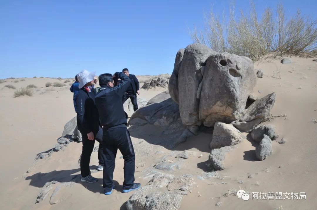 阿拉善右旗文物保护中心对岩画遗址进行调查三、深化学术研究,提升岩画利用水平。