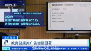 在线教育与医药健康在这个特殊的年份,疫情推动人们对在线教育和医药健康的需求,因此这两个行业的广告增幅最为显著,2020年在线教育与医药健康的广告增幅分别达57.1% 和40.28%。