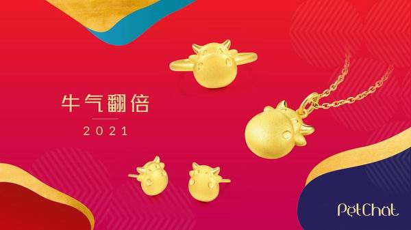 除了圆润饱满的金牛足金摆件外,周生生工匠还运用牛为设计主题,生动的笔触打造出多款吉祥讨喜的萌牛造型饰品,为你点缀节日的好心情。PetChat系列“牛气冲天”新品以流畅线条勾勒出活泼生动的小牛形象,圆滚滚的脑袋憨态可掬,为可爱度加分。生肖牛乖萌的外表下,内心蓄满守护能量。