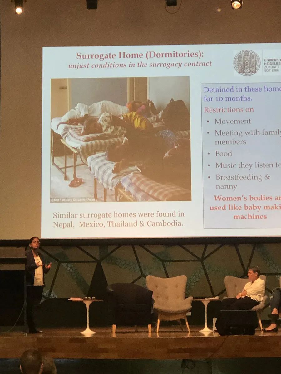 在德国海德堡大学人类学系南亚研究所,沙拉瓦南教授关于生殖技术伦理和法律的课程。2009~2010年间,她在印度研究代孕,访谈了多个代孕妈妈、预定家长( intended parents,也就是客户)、以及代孕诊所。
