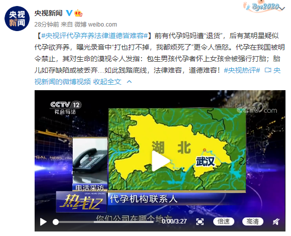 今天(19日),央视新闻官微发表评论,点评代孕弃养法律道德皆难容。