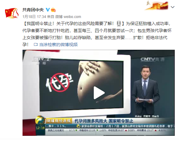 人民法院报点名提醒:我国明确禁止代孕行为。