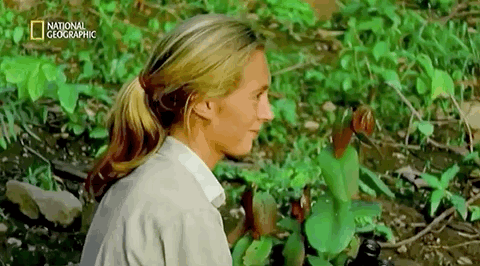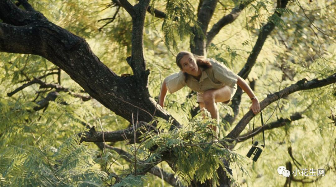 为了获得黑猩猩的认同,Jane 开始模仿黑猩猩,保持和它们一致的生活习性,比如睡在野外,吃黑猩猩吃的果子,甚至像黑猩猩一样爬树,还会模仿它们的叫声,好像自己就是一只母猩猩…