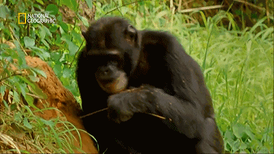 终于某一天,Jane 的观察取得了重大突破,她发现白胡子大卫折下一根树枝,摘掉了上面的叶子,蹲在白蚁丘旁边掏白蚁吃。这个发现直接推翻了科学家的以往结论:只有人才懂使用工具!