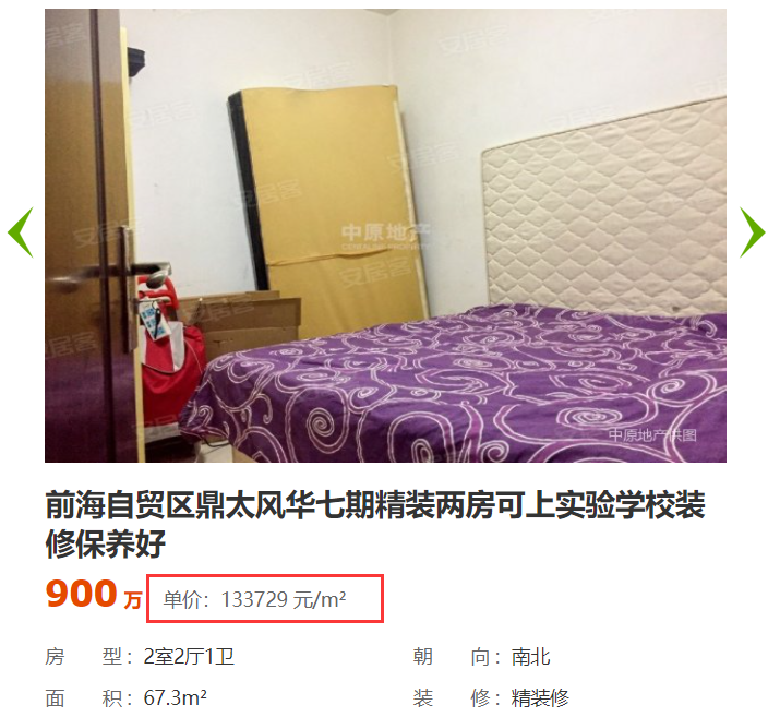 而目前,同样位于前海片区的前海时代小区,挂牌价高达每平方米17至20万元之间。