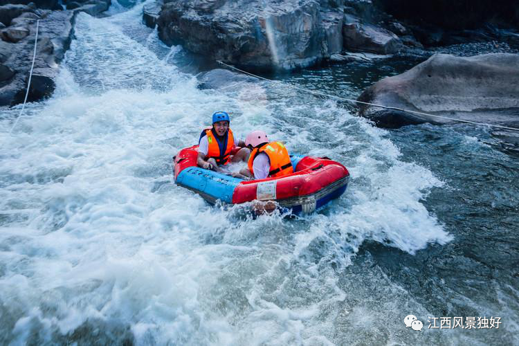 望仙谷的峡谷狭长且曲折,两旁山壁陡峭如同刀削,其中有块大悬崖名为白鹤崖,则更为特别。这里曾是古代众多道家方士起居修仙的地方,垂直高度有110余米。如今,景区正在此开发建设12间悬空玻璃客房和悬崖图书馆、悬崖餐厅、高空观景台等人工设施。项目完工后,游客可择崖而居,进而俯可瞰整座山谷,远则眺灵山龙脊,与山野为邻、与星月相伴,意似九霄云宫。望仙谷的河道怪石嶙峋、上下落差较大,上游建有一座小型水库,可自由调节河水大小,与其他地方的漂流相比,增添了几份刺激与乐趣。漂流河道全长有2.8公里,落差185米左右,每年夏天有十多万游客前来漂流冲浪。
