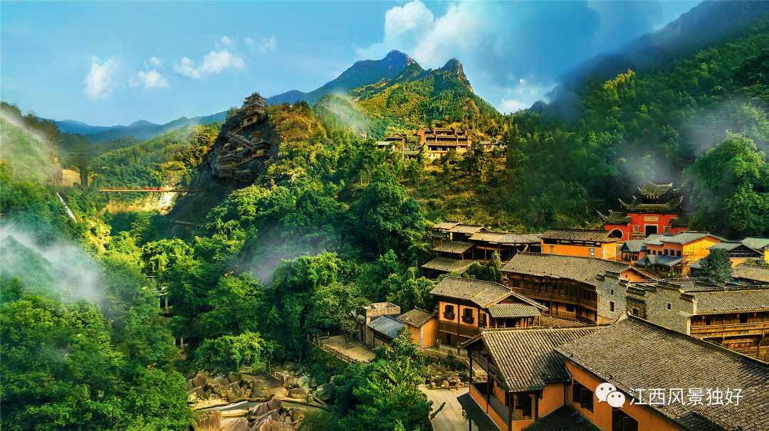 沿着栈道、穿过瀑布、越过森林,不久就来到了望仙峡谷小镇。小镇大量采用了夯土墙、石墙搭配木质小窗、黑瓦片的建筑风格,最大限度地遵循了复原村落、旧地取材的原则,具有浓厚的江西地域民居特色,这也是与其他特色小镇相区别的地方。在以夯土墙、黑瓦片为外观主色调的听风、观山悦等民宿中,各项设施现代又齐全,游客可以享受比肩奢华酒店的舒心服务。同时,这里的美食也是原汁原味的,在岩铺街市集中打造了红糖、酒、酱醋、油、年糕、豆腐、白茶、辣酱、造纸、木竹、布染等十多个传统农业手工作坊,游客们可以品尝到最地道、最正宗的望仙味儿,并可亲身体验各类传统手工农产品加工和制造过程。在鸣蝉巷和灵光街上,则汇聚了充满奇思妙想的文创商店和上饶的非遗体验项目,溪谷左岸是由酒吧、红酒坊、啤酒屋、烧烤吧组成的酒吧街。在小镇中,还建有望仙杨府、胡氏宗祠、聚仙戏台、三神庙等精巧古建筑,江西弋阳腔、木偶戏、畲族民歌和沉浸式体验剧《我就是药神》等也在此联袂演出。