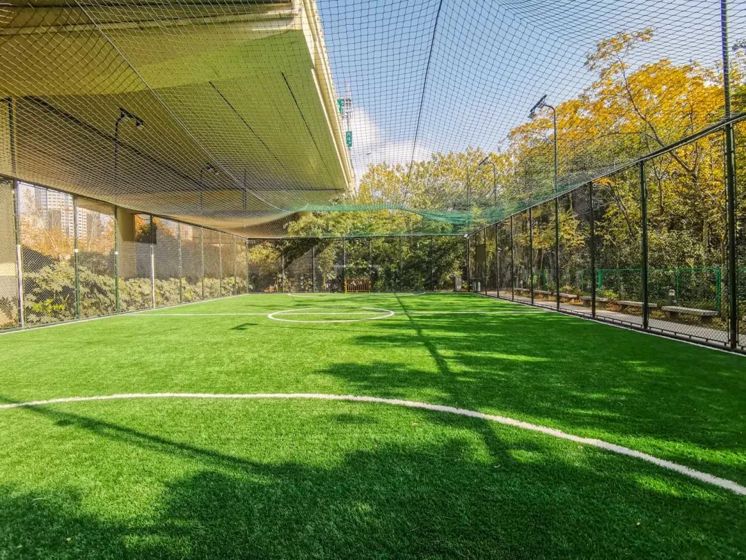 位于延安高架路下面的新虹桥中心花园五人制足球场据介绍,这片场地原来种的绿植,因为在高架下面受光照和雨水影响成活率不太高,维护成本却比较高。但这个地区周围白领和居民比较多,像这样1200多平米的公共的足球场地却很少,所以现在建成以后这个场地基本上供不应求。