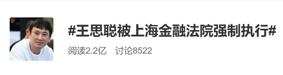 消息一出,王思聪被法院强制执行的新闻便迅速冲上热搜,网友对此议论纷纷。
