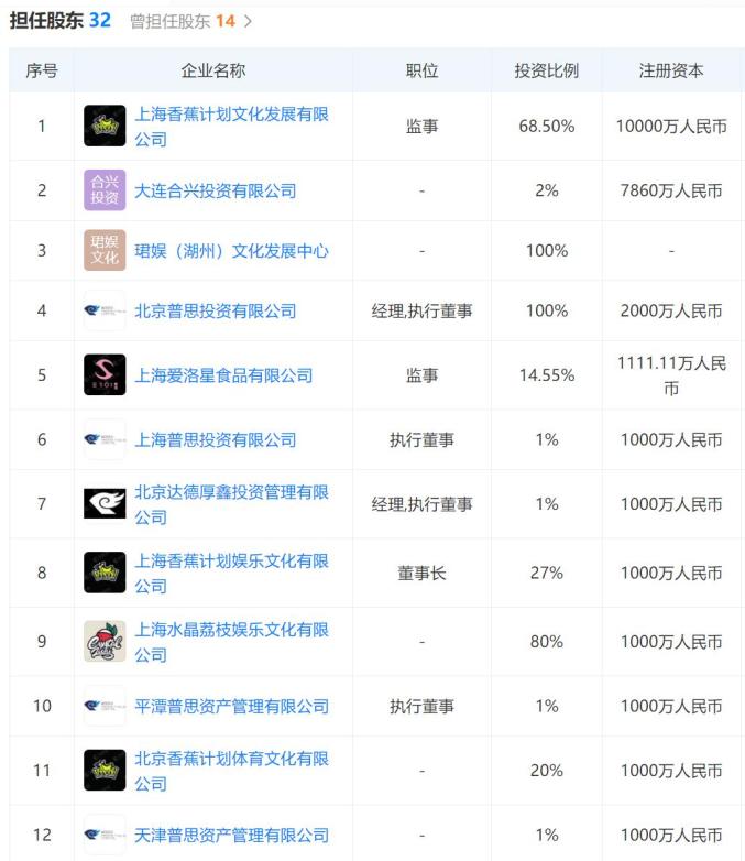 目前,其担任32家公司的股东,同时也退出了14家公司的股东名单。