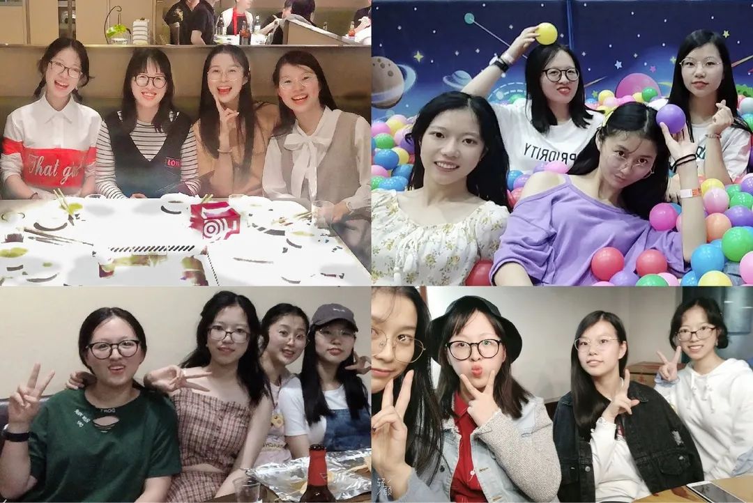 寝室合照和大多数女孩一样,她们爱吃爱玩,烟火气最抚凡人心,这不仅让个人紧绷的神经获得舒展,也能让彼此积攒更多的回忆。毕至居、KTV、密室逃脱、追剧综艺……寝室活动花样百出,每个人的生日也是在彼此陪伴下一起度过。厨艺能手、K歌之王、密室达人、巧手花匠,她们各有所长也共同进步。