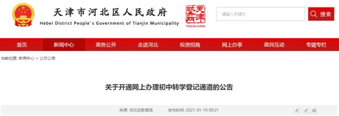 河北区1月19日,河北区教育局发布关于开通网上办理初中转学登记通道的公告。