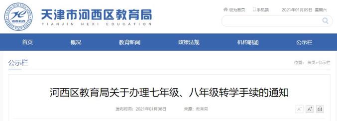 1月8日,河西区发布关于办理七年级、八年级转学手续的通知。根据目前的疫情形势,本着安全、便捷的原则,现就办理七年级、八年级转学手续具体情况说明如下: