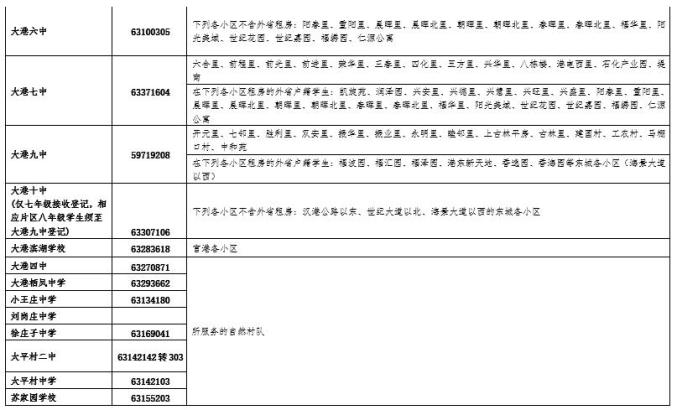 1、塘沽一中、塘沽二中、塘沽五中、塘沽六中、塘沽十四中、塘沽新港中学、塘沽育才学校、实验中学滨海学校各年级,塘沽十一中八年级、塘沽七中八年级、大港二中八年级、大港十中八年级,不接收转入(现八年级即2019级)。