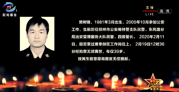遵其生前愿望,家属将其器官无偿捐献,这个世界将多了几个和樊树锋“血脉相通”的人。此生无悔披战甲,来世还要做警察。他以实际行动守护了辖区群众的平安,用生命和热血诠释了“对党忠诚、服务人民、执法公正、纪律严明”的铿锵誓言。