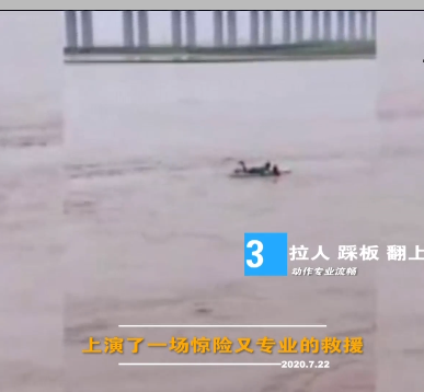 2020年7月22号,在黄河荥阳段桃花峪大桥附近, 21岁皮划艇退役运动员马成龙突然发现一位落水者,他迅速划着桨板靠近,用熟练的“桨板翻转救援”动作将落水者营救上岸。