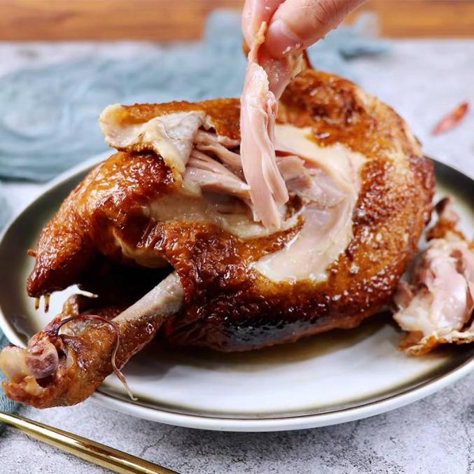 它选用三黄鸡,这种土鸡个头小,长不大,但是肉质比较嫩,好消化。家里有老人孩子的一定要买,入口即烂,好消化,又能补充蛋白,吃扒鸡,非常温补。