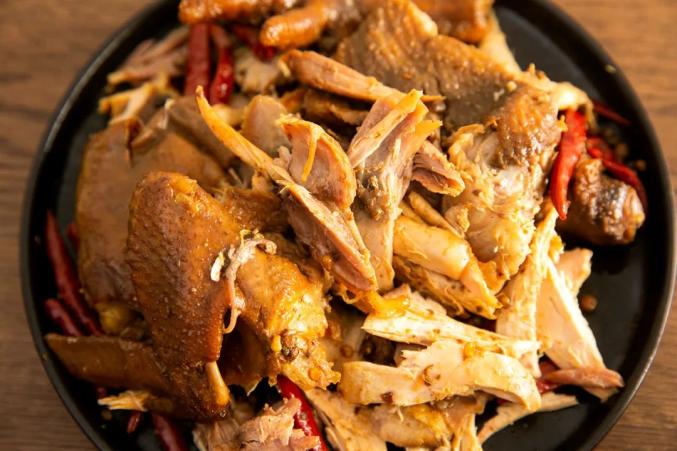 吃起来,那种吸吸嗦嗦,“麻嘴头”的感觉太爽了!鸡皮咸香,鸡肉椒麻入味,喉咙咽下去了,嘴巴还在回味。