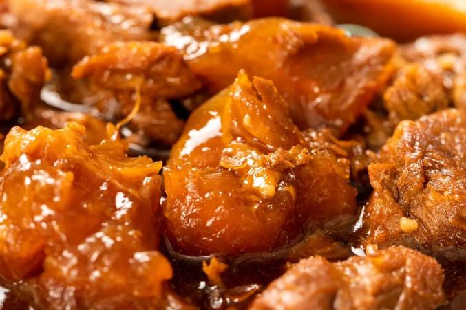 软烂脱骨,肉质饱满多汁,汤汁入味。