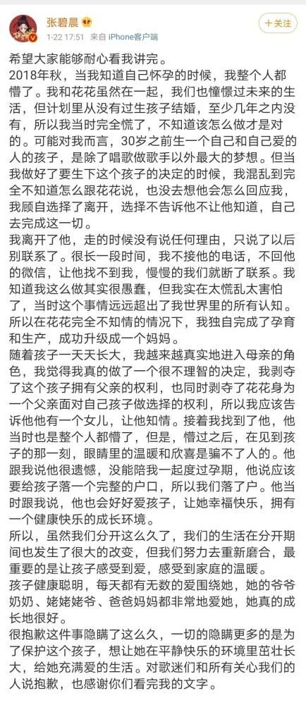 不久后,张碧晨发长文讲述来龙去脉:“希望大家能够耐心看我讲完。”