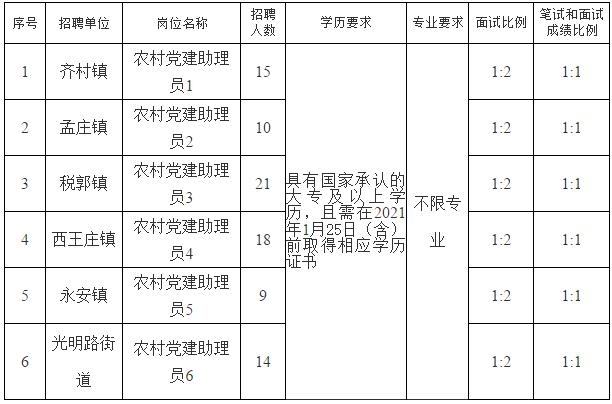 ■20日,市中区农村党建助理员公开招聘工作领导小组办公室发布《2021年市中区各镇、光明路街道面向社会公开招聘农村党建助理员简章》,市中区各镇、光明路街道2021年计划招聘农村党建助理员87人。更多详情可登陆枣庄市市中区人民政府门户网站进行查询。