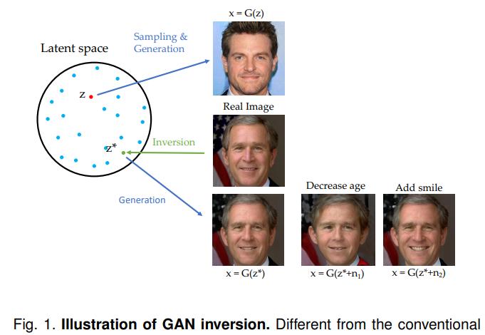 摘要:GAN 反转(inversion)旨在将给定图像逆映射到预训练好的 GAN 模型的潜在空间,以便由生成器基于反代码忠实地重建图像。作为一种新兴的连接真假图像领域的技术,GAN 逆映射在使 StyleGAN 和 BigGAN 等预训练好的 GAN 模型用于真实图像编辑应用中起着至关重要的作用。同时,GAN 反转也为 GAN 潜在空间的解读以及如何生成逼真图像提供了思路。在本文中,来自清华大学深圳国际研究生院和美国东北大学等机构的研究者对 GAN 反转进行了概述,并重点介绍了最近的算法和应用。论文涵盖了 GAN 反转的重要技术及其在图像恢复和处理中的应用。研究者最后进一步阐述了未来的一些发展趋势和挑战。