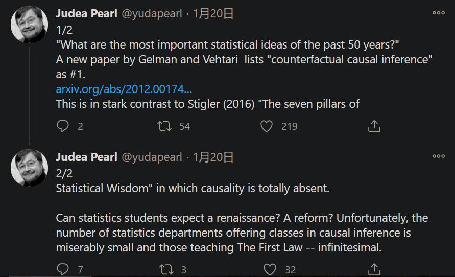 图灵奖得主、贝叶斯网络之父 Judea Pearl 表示:「这篇论文将因果推理列入了统计学思想之一,与芝加哥大学统计系教授 Stephen Stigler 所著《统计学七支柱》中的观点截然不同。」