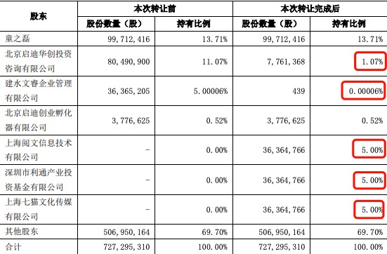 上述协议转让后,上海阅文、深圳利通将分别持有公司3636.47万股股份,合计占公司总股本的10%;百度七猫将持有公司5%股权。公司与上海阅文及其关联方、深圳利通关联方、百度七猫进一步深化合作。